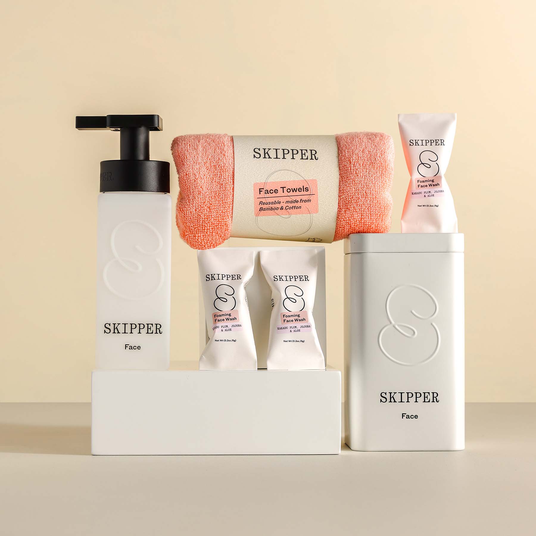 • Dispenser features ‘S’ logo embossing, with matte black custom Skipper pump